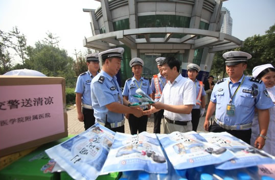 党委书记夏耀林带队慰问交警 发布时间:2013年8月9日 来源:山西中医学院附属医院 作者:宣传科 8月9日上午,党委书记夏耀林一行来到太原市迎泽桥西慰问万柏林一大队一中队一线民警,并送去医院自制的防暑凉茶等慰问品,感谢他们对城市道路交通做出的贡献。