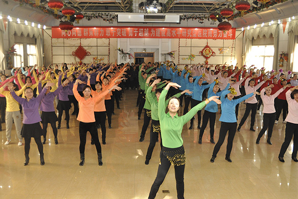 为庆祝三八妇女节,3月6日,东京热 工会组织了首届全健排舞大赛。全院医疗、护理、行政后勤等部门派出10支代表队、180余名职工参加了比赛。院领导李廷荃、夏耀林、黄安、李艳彦、王震、武登龙及党院办主任李晓伟担任评委。