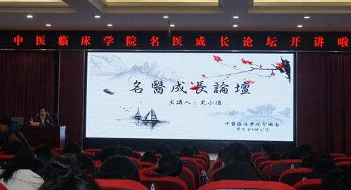 2018年12月16日上午,由中医临床学院分团委主办的名医成长论坛在图书馆报告厅如期举行。本次讲坛邀请到我校离退休处史小进教授,中医临床学院分团李娟老师、赵国鹏老师及学院全体同学参加。