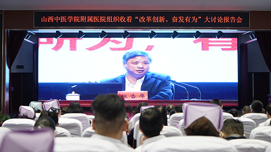 3月1日,医院党委在多功能厅组织观看全省“改革创新 奋发有为”大讨论报告会,院领导及全体党员参加。