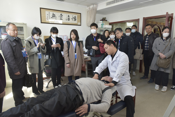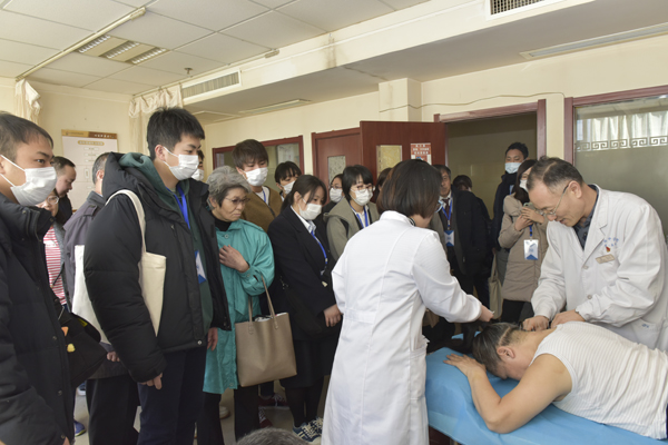 日本龟田医疗大学师生先后参观了针灸科和推拿科门诊、中药房、脾胃科(三病区)中医治疗室,了解了东京热 中医特色治疗技术,感受了东京热 浓厚的中医文化氛围。日本友人认真听取了讲解,不时发出赞叹并表现出对中医传统项目操作的极大兴趣。