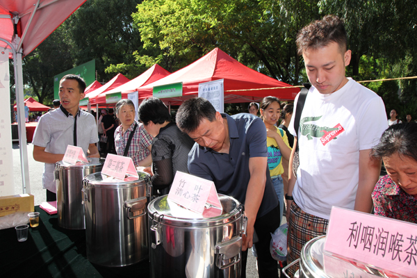 在药茶品尝区,降脂减肥茶、降三高茶、竹叶清心茶及清咽利喉茶深受群众欢迎