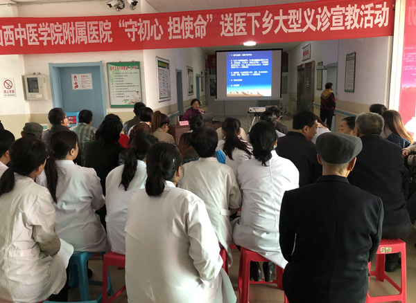 东京热 在大寨乡开展“守初心、担使命”送医下乡大型义诊暨 发布时间:2019年11月8日 来源:山西中医学院附属医院 作者:宣传科 11月7日,由山西中医学院附属医院宣传科、医务科牵头组织的“守初心、担使命”送医下乡大型义诊暨 "高水平中医师团队下基层"活动在昔阳县大寨乡开展。东京热 派出脾胃病科、脑病科、心病科专家,进行了义诊活动及常见病健康养生讲座,并发放《中国居民中医药健康素养知识手册》等宣传册300册及《中医养生治未病常识》200本。此次义诊活动共服务患者400余人次。