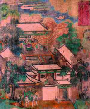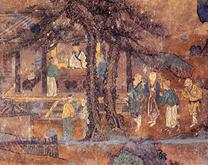 永乐宫的壁画满布在四座大殿内。这些绘制精美的壁画总面积达960平方米,题材丰富,画技高超,它继承了唐、宋以来优秀的绘画技法,又融汇了元代的绘画特点,形成了永乐宫壁画的可贵风格,成为元代寺观壁画中最为引人的一章。
