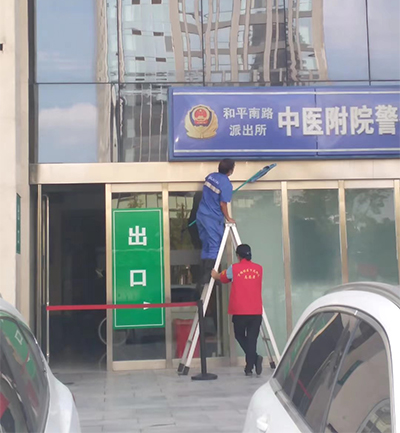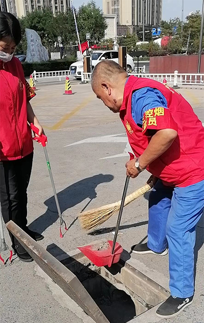 保洁人员对环境卫生进行全面清扫