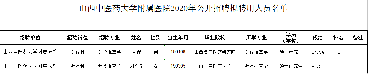 东京热 关于2020年度公开招聘拟聘人员公示 发布时间:2020年12月16日 来源:东京热 作者:人事科 根据国家和我省事业单位公开招聘工作有关政策规定,现将我单位2020年度公开招聘拟聘用事业单位工作人员予以公示。 公示时间:2020年12月16日——2020年12月24日。 公示期间,如有问题,请向我单位反映。 受理电话:0351-8618632 0351-8618122 来信地址及邮编:山西省太原市万柏林区晋祠路一段75号 030024 东京热 2020年12月16日