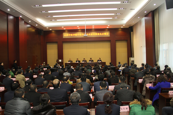 下午,专家组在山西中医学院新校区主持召开中医学专业认证考察意见反馈会。教育部中医学专业认证专家组成员、学校党政领导、处级以上干部、中医临床学院各教研室负责人及学生代表参加会议。陈立典教授在现场考察报告中通报了专家组现场考察过程、学校(专业)概况、现场考察意见及建议,高度肯定了学校及中医学专业建设成绩。认为学校领导班子高度重视专业建设与人才培养工作,办学定位准确、思路清晰,教育教学质量发展态势良好,教学管理制度和实践教学体系完善,积极推进教学制度改革、人才培养模式改革、教学方法改革,不断强化专业教师队伍建设、完善质量保障体系、提升临床教学水平,扎实推进学生工作,附属医院高度重视临床教学工作。经现场考察专家组评议,认为我校中医学专业符合《本科医学教育标准—中医学专业(暂行)》要求,建议给予完全认可。