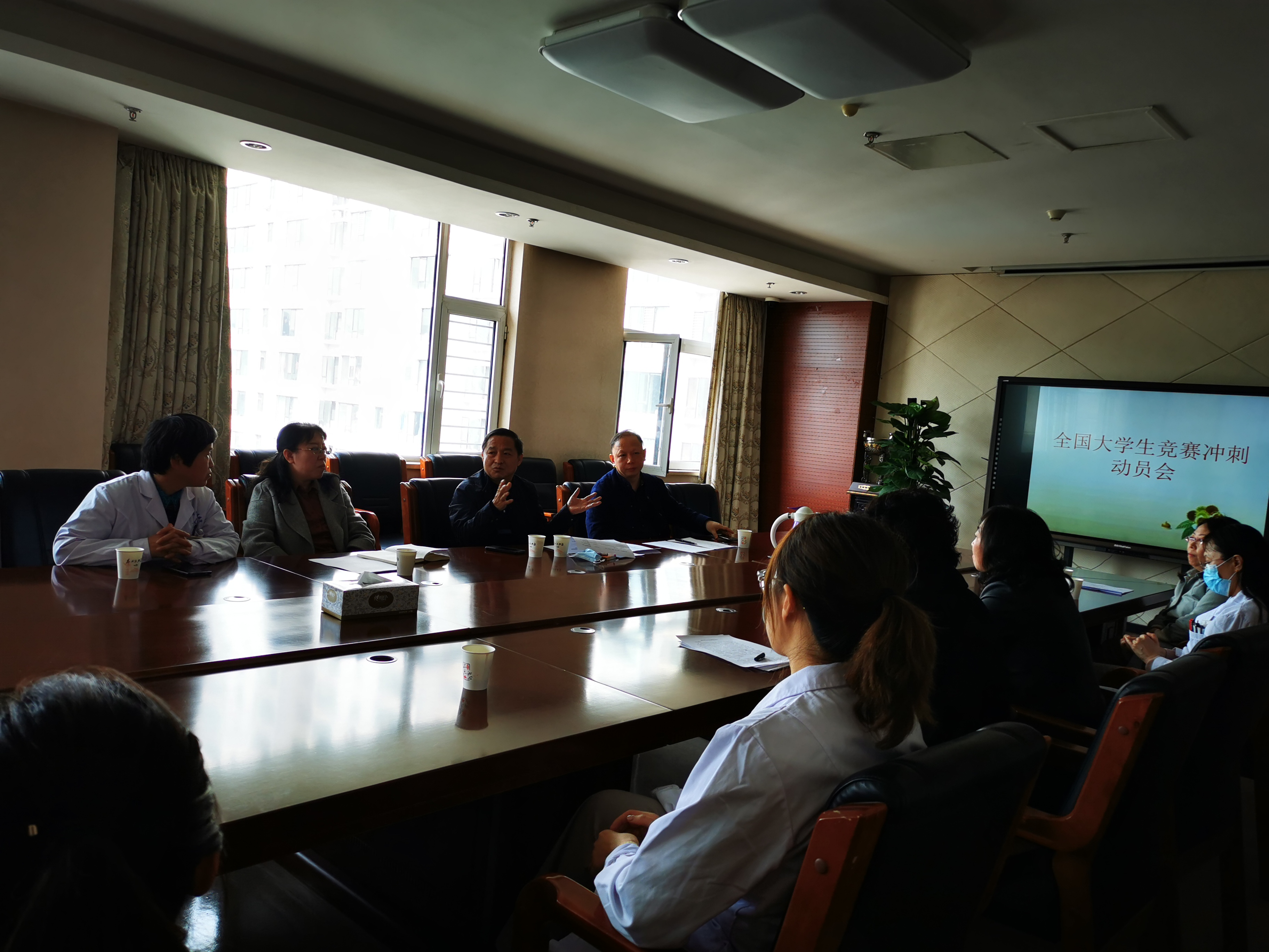 学校分管领导与教务处也大力支持此项工作开展,2021年3月25日上午在附属医院门诊楼15层2号会议室举行《全国大学生医学技能大赛冲刺动员会》。山西中医药大学副校长冀来喜、教务处处长王军、教务处副处长王千怀与学院李艳彦副院长、教学科全体及大赛的各位指导老师及参赛学生参会。培训老师和学生们在会上交流反馈了各自培训的感受、存在的问题,并提出了下一步培训提高的合理化建议。