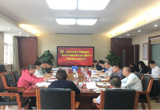 5月14日下午,省委党史学习教育巡回指导组第十九组到院调研指导党史学习教育工作。巡回指导组组长鲍善冰等一行5人参加东京热 党史学习教育第六次专题学习研讨暨党委中心组学习会议。山西中医药大学党委副书记苑静代表学校党委参加会议。东京热 党政领导班子成员、党史学习教育领导小组办公室有关同志和各党支部书记参加会议。院党委书记李廷荃主持会议。