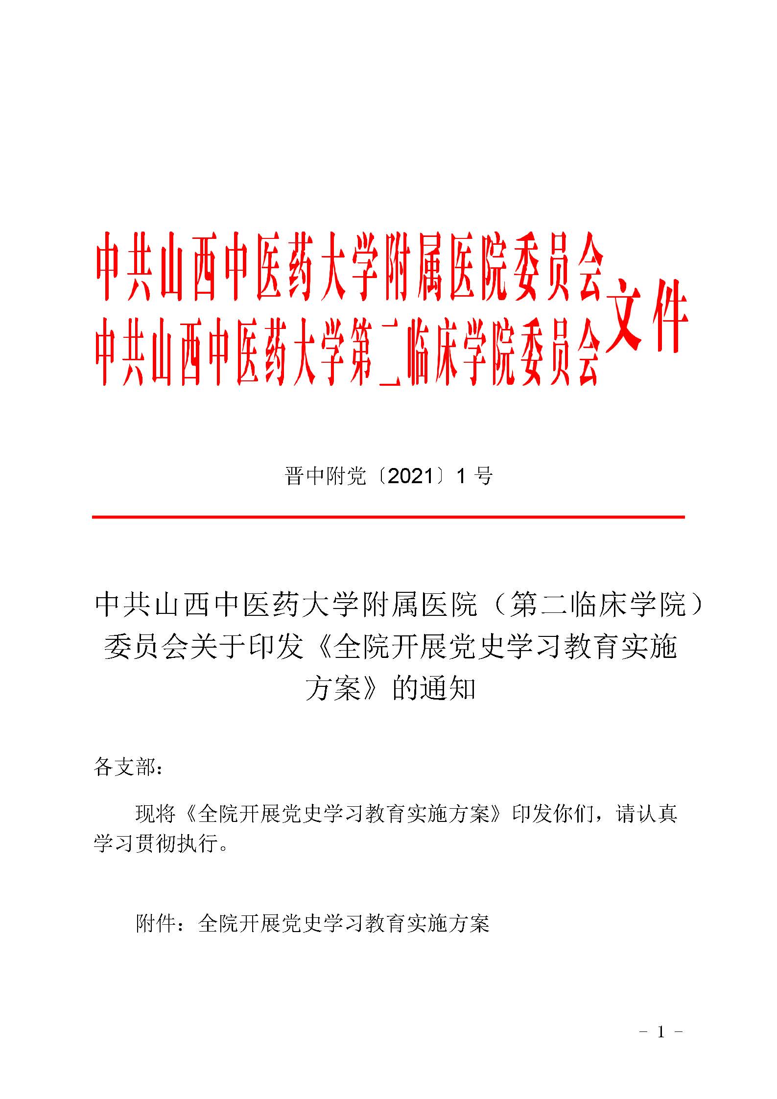 中共东京热 (第二临床学院)委员会关于印发《全院开展党史学习教育实施方案》的通知