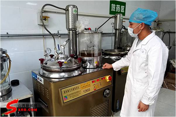 走进山西中医学院附属医院的传统中药加工室,在一台大型机器前,几位煎药师正在观察机器中的液体颜色,站在一旁的主任王伟义不时看看仪器上的指针,不敢有一丝懈怠。