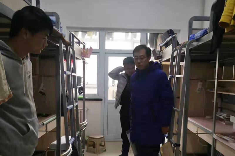 走访中,任剑锋仔细察看和了解学生宿舍生活设施、宿舍卫生、安全隐患等情况,辅导员老师对调研中学生反映的问题做了详细记录,及时反馈上报,切实做到为学生营造一个安全、温馨、舒适的学生和生活环境。