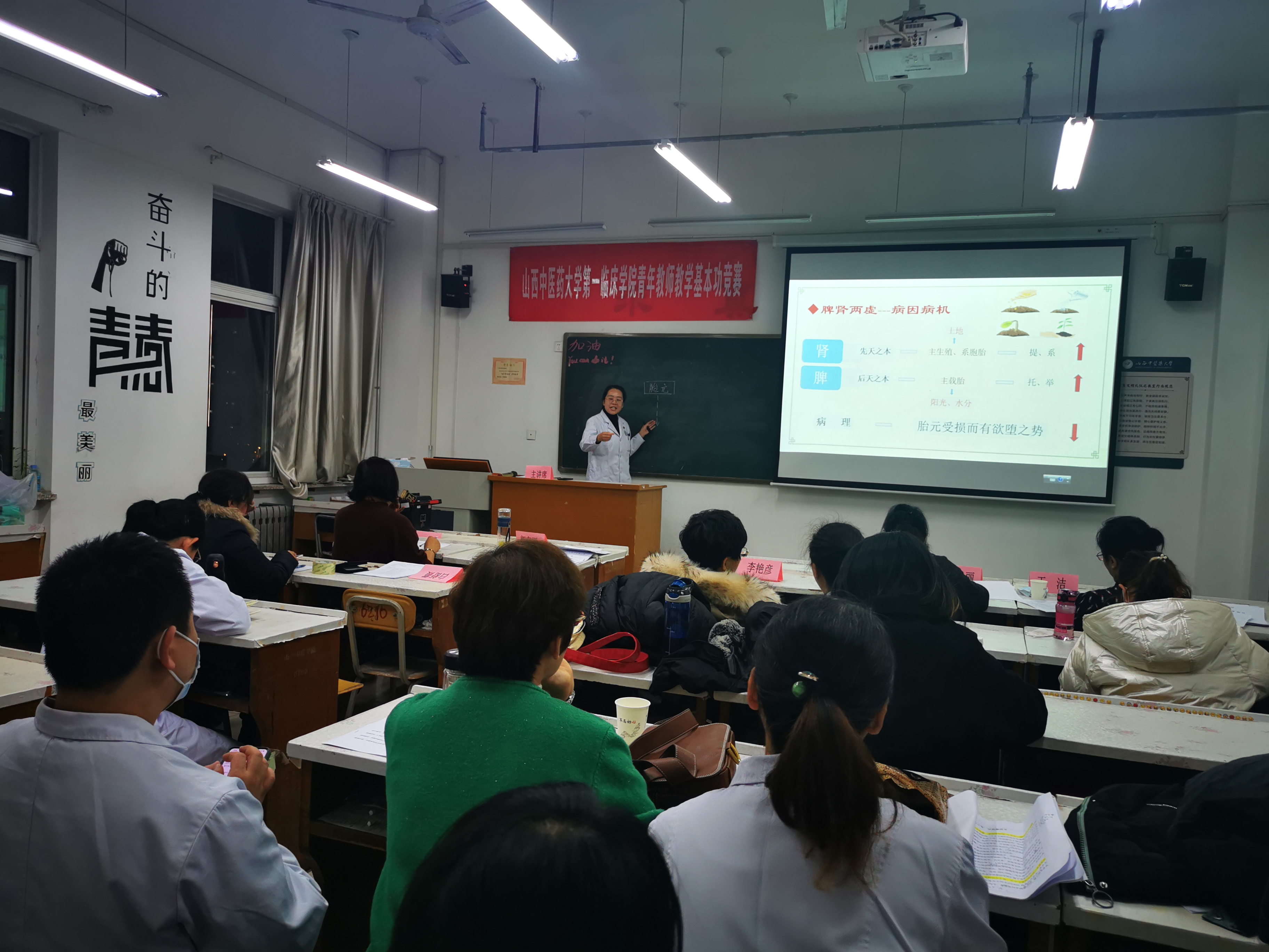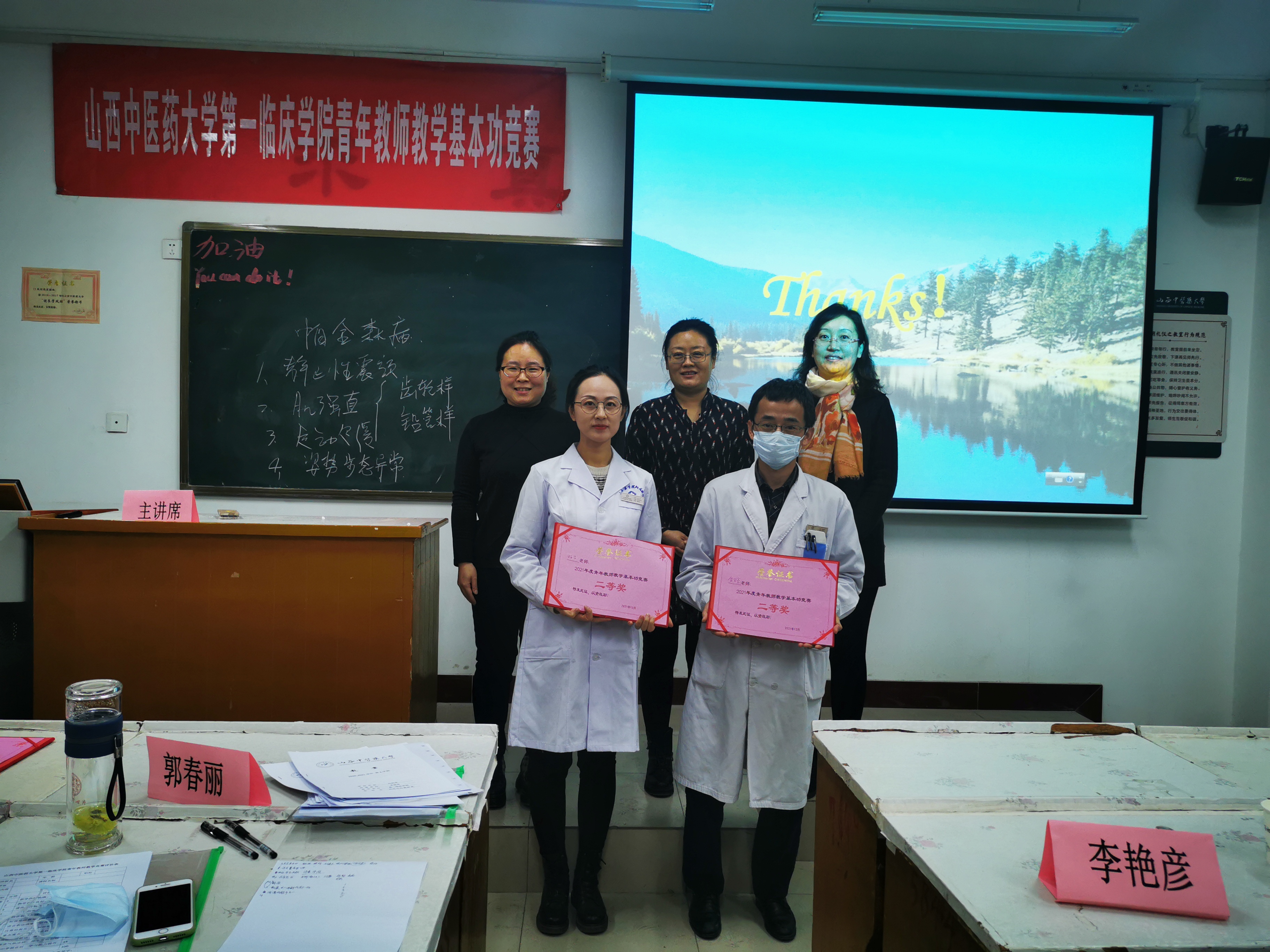 为提升青年教师教学技能和业务素质,2021年12月15日下午,山西中医药大学第一临床学院在太原校区2号教学楼706教室举办了青年教师教学基本功竞赛。特邀山西医科大学王洁、王丽教授及北京东京热 郭春莉主任担任评委,各教研室共15名教编、卫编教师参加了竞赛。