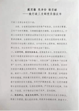 4月14日下午,行政三支部组织开展“戴党徽 亮身份 做贡献——助力疫情防控”主题党日活动和专题理论学习会。