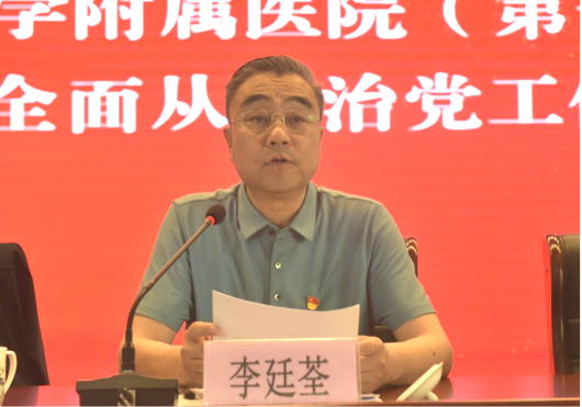 李廷荃要求,2022年全面从严治党工作要以习近平新时代中国特色社会主义思想为指导,全面贯彻党的十九大及十九届历次全会精神,深刻认识“两个确立”的决定性意义,增强“四个意识”、坚定“四个自信”、做到“两个维护”,坚决贯彻落实党中央全面从严治党战略部署,弘扬伟大建党精神,永葆自我革命精神,坚持政治从严、思想从严、组织从严、作风从严、纪律从严、制度从严、反腐从严,扎实推进全面从严治党向纵深发展,引领保障全方位高质量发展,以实际行动迎接党的二十大胜利召开。一要坚持政治统领。引导党员干部深刻领会“两个确立”的决定性意义,推动习近平总书记关于全面从严治党重要讲话重要指示批示精神落地生根。二要强化思想引领。深入学习党的创新理论和重要会议精神,巩固拓展党史学习教育成果,切实加强思想政治工作。三要建强基层组织。提升党支部标准化规范化水平,加强学习型党组织建设,严格党的组织生活制度,加强党员教育管理和监督,提高党员队伍整体素质。四要打好人才基础。以区域医疗中心建设为契机,积极推进人才工作体制改革,强力推进引才、育才、用才等系列工作,积极拓展人才工作新局。五要持续正风肃纪。压紧压实全面从严治党主体责任,做好巡视整改工作“回头看”,加强清廉医院(学院)建设,做好廉政风险防控,严肃监督执纪问责,加强作风建设,营造担当作为、干事创业、争先创优的良好风气。六要积极发挥党建作用。加强党的全面领导,坚持以党建统领改革发展各项工作,以发展成果检验党组织工作成效和战斗力,推动党建工作与中心工作互促共进。