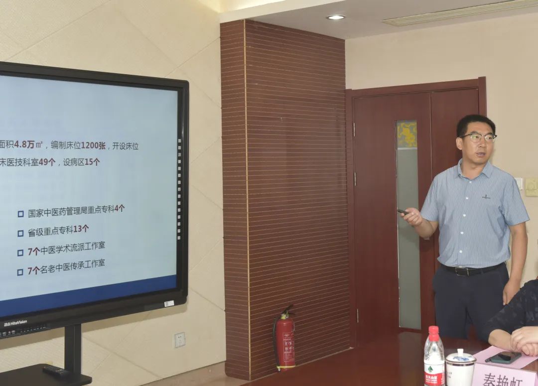 党委副书记、院长郝旭亮介绍了国家区域中医医疗中心及山西省中医现代化康复中心、中西医结合心血管临床诊疗中心、中医医教研协同创新中心等“三个中心”建设情况。同时,他作为药物临床试验机构主任汇报了医院GCP机构的建设情况。