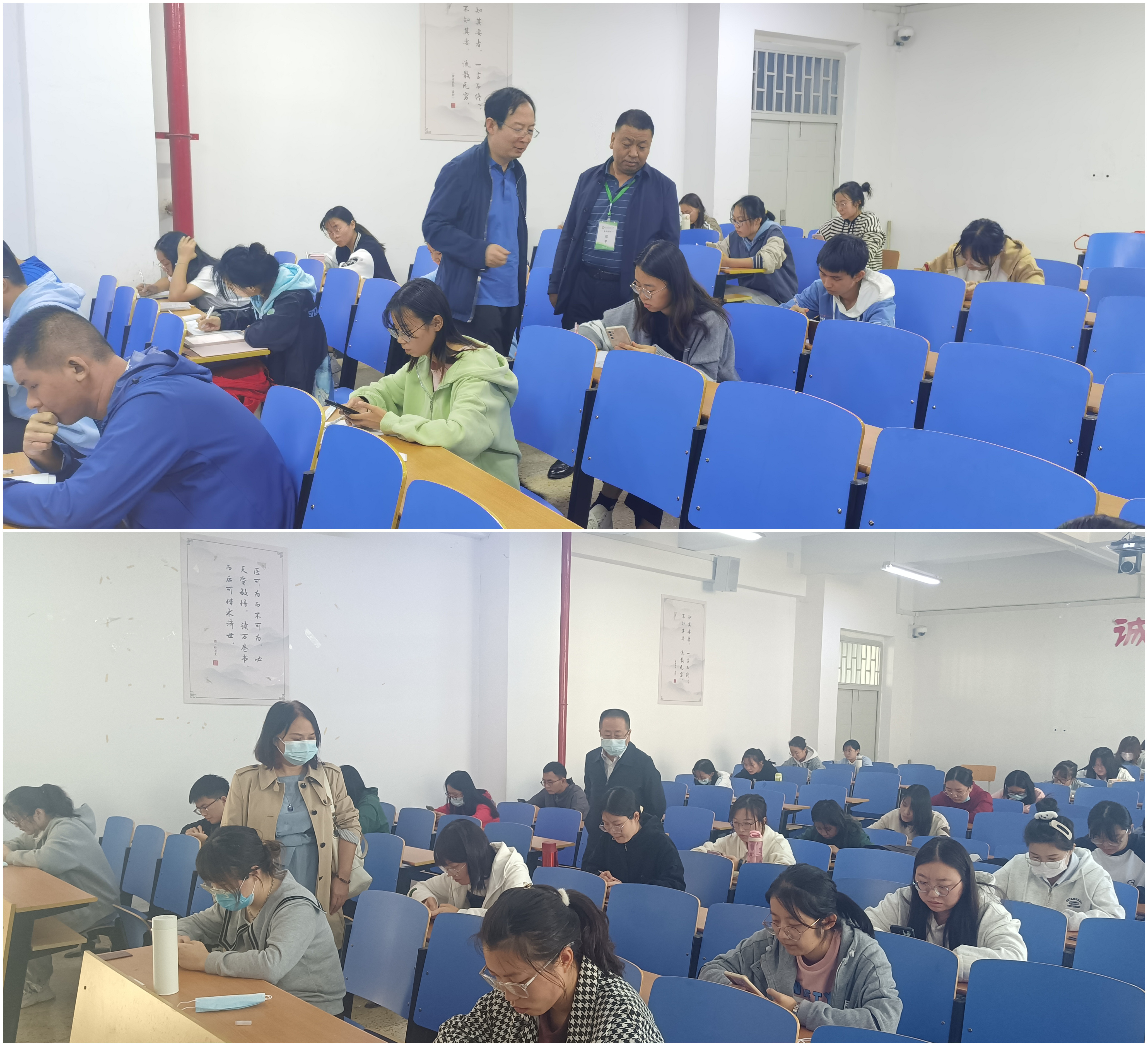 2022-2023学年第一学期伊始,第一临床学院严格按照学校相关文件精神,所有院领导、督导分委员及教学科、学生科管理成员,组成以院领导为组长的九个专班督导组,对中医学专业及交叉检查的健康服务与管理学院所涉考场进行了点对点的认真巡考督察,同时对东京热 相关课程教师进行了现场听课指导。
