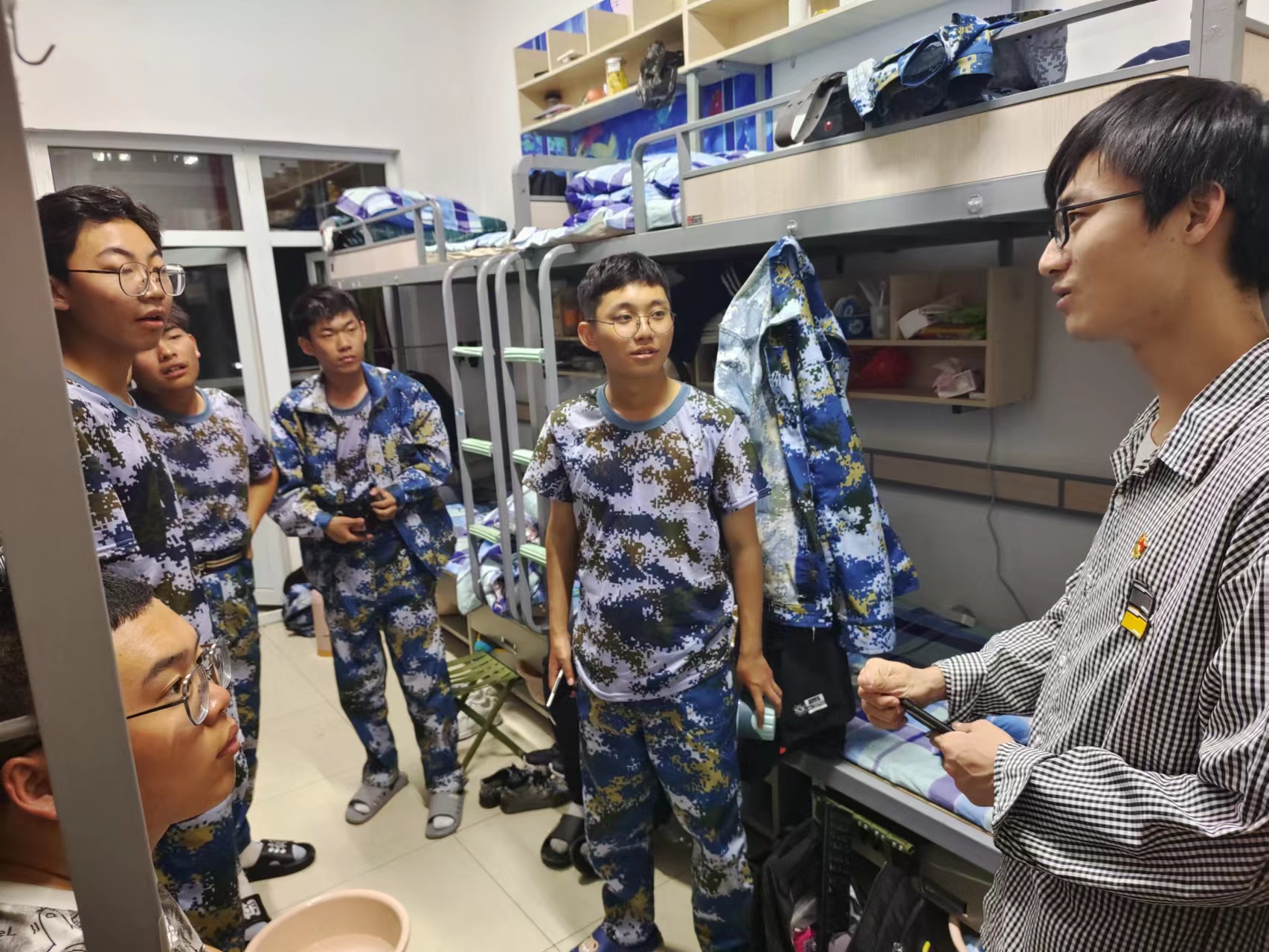在深入宿舍期间,党员同志们与新生进行了亲切的交流,询问了新生们到校后的军训和生活情况,提醒他们提防电信诈骗,注意宿舍安全。同时,向新生详细地介绍了入党流程以及党员发展工作的相关要求,鼓励新生积极向党组织靠拢。