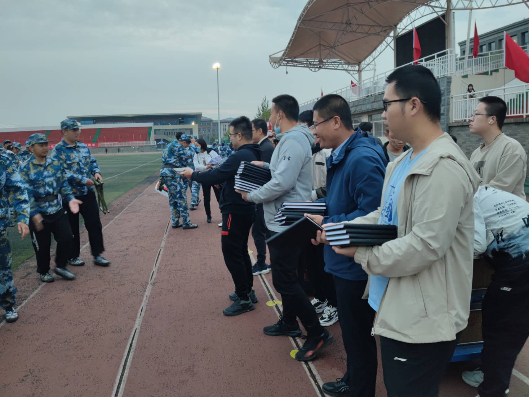 沙场秋点兵,军训正当时。正值祖国母亲73华诞之际,第一临床学院特地为每位新生准备了“秋天的第一杯奶茶”和笔记本,表达了对新生的关心和关爱之情。院党委副书记任剑锋、全体辅导员一起参加慰问新生活动,学生科科长赵国鹏主持。