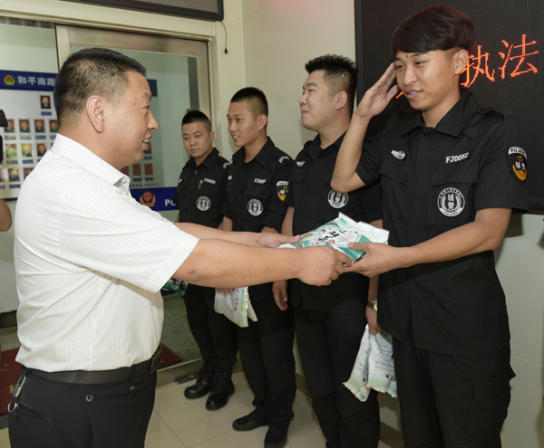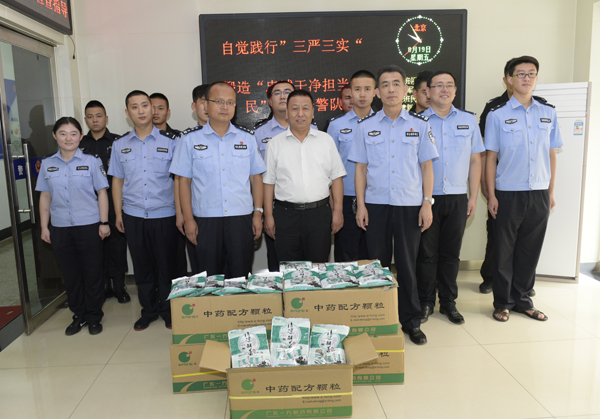 副院长武登龙带队慰问千峰南路派出所民警 发布时间:2016年8月20日 来源:山西中医学院附属医院 作者:宣传科 8月19日,副院长武登龙、保卫科长宋明亮带队到千峰南路派出所慰问,并向全体民警赠送了东京热 自制的防暑凉茶。