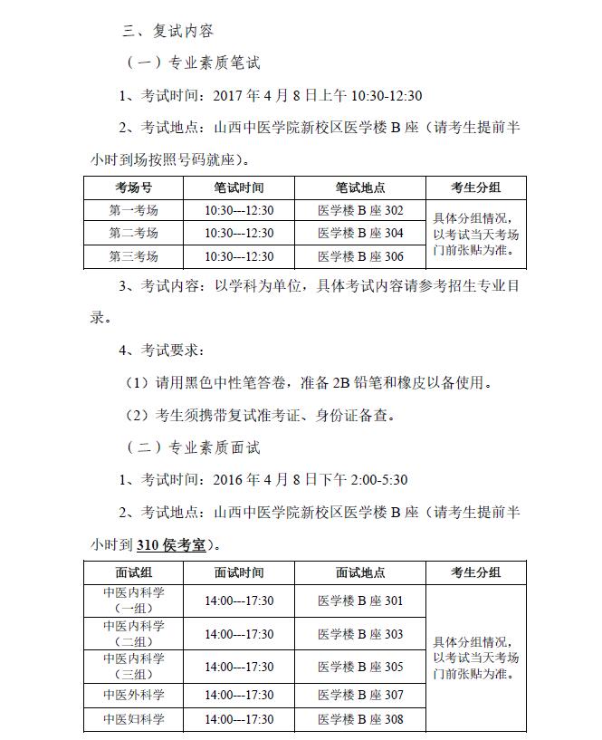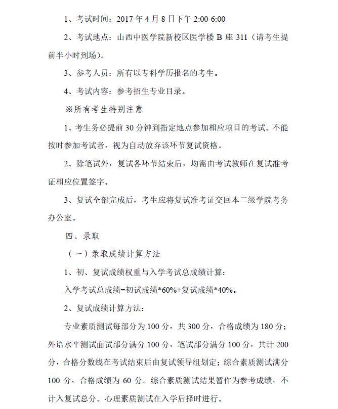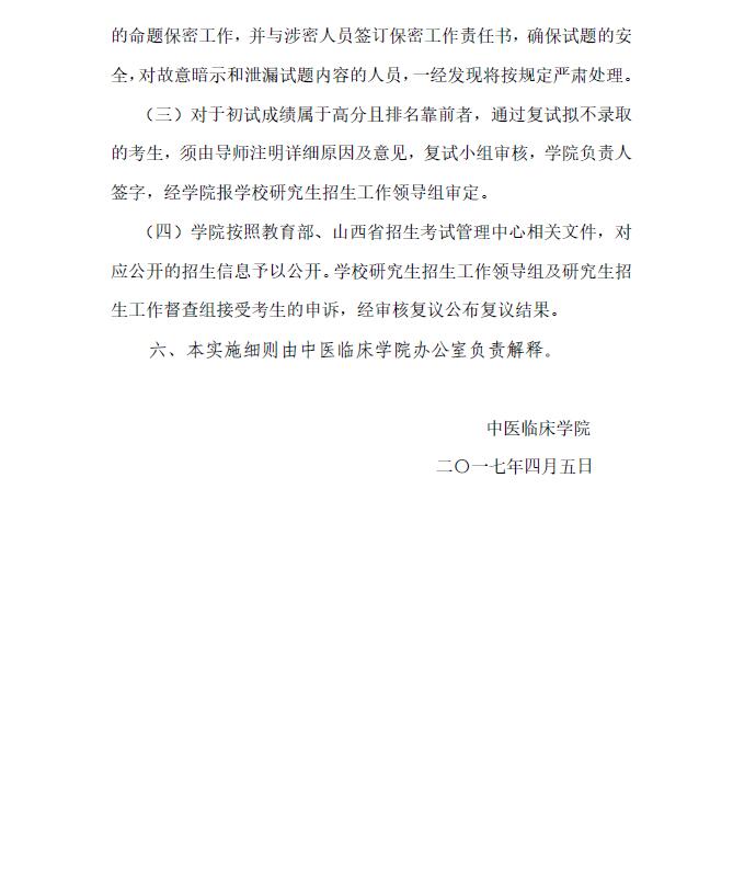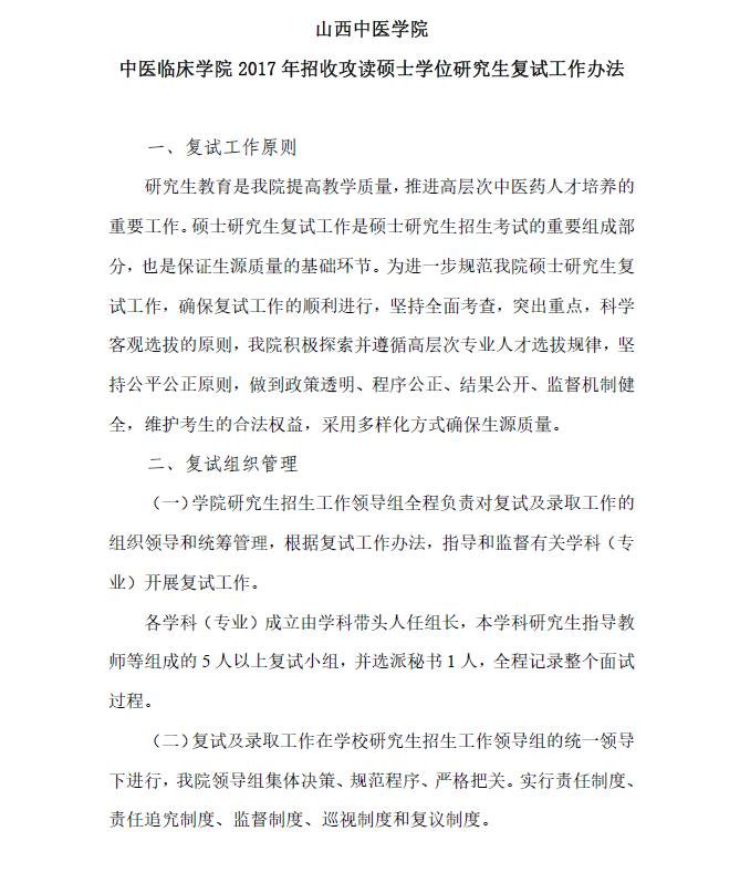 山西中医学院中医临床学院2017年招收攻读硕士学位研究生复试工作办法
