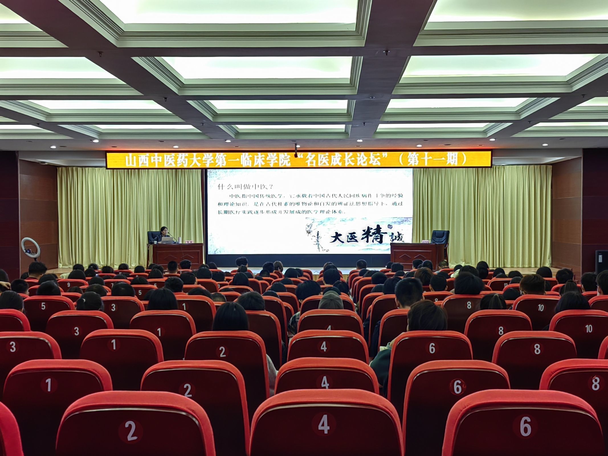 2023年4月10日晚,第一临床学院在图文信息中心A厅成功举办名医成长论坛(第十一期)——菽水承欢,一路杏林春暖。邀请到中华中医药学会皮肤病分会委员、中国整形美容协会中医美容分会理事贾颖教授。论坛由学生科科长赵国鹏老师主持,采取“线上+线下”方式,辅导员老师及全院同学参加本次论坛。