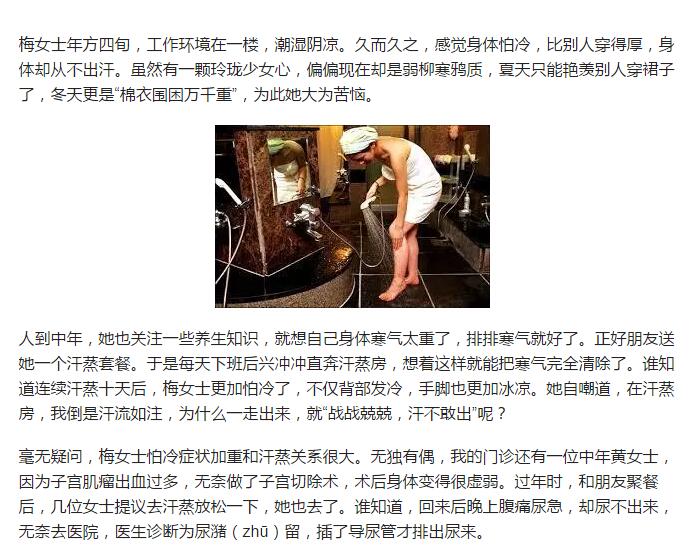 中年美女尝试汗蒸,当天就被送到医院插尿管,究竟发生了什么?