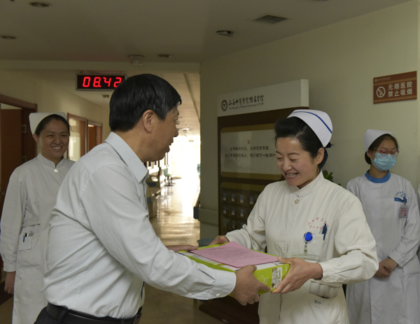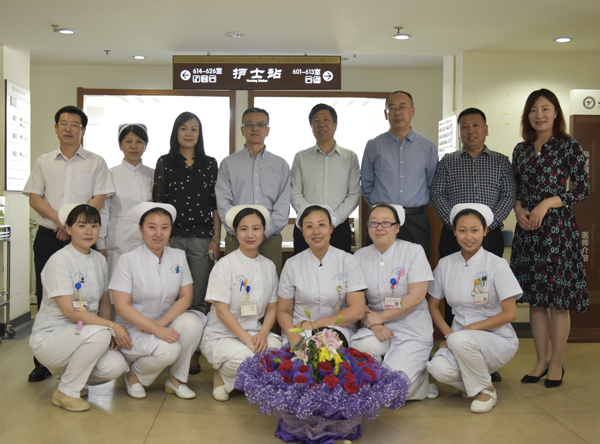 5月12日上午,为庆祝第106个国际护士节,东京热 领导夏耀林、黄安、蔡晓丽、王震、武登龙及院办、护理部、工会等部门负责人,逐一走访各临床科室,对奋斗在临床一线的护士进行亲切慰问,为她们带去了节日的祝福与问候。