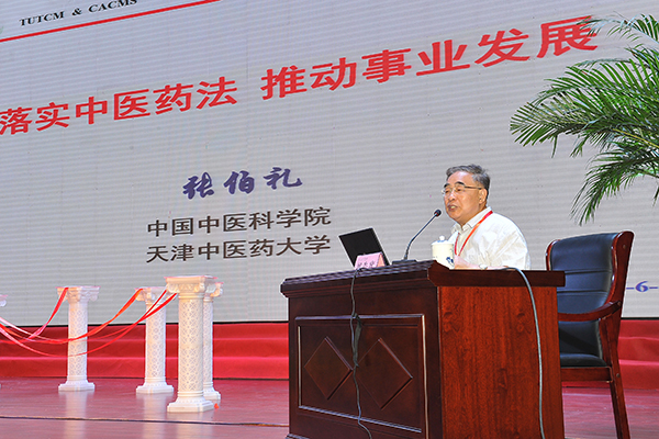 中国工程院院士、中国中医科学院院长、天津中医药大学校长张伯礼教授围绕“落实中医药法,推进中医药发展”这一主题进行发言,他从中医药法的特点、中医药发展的机遇、中医学理念特征、中药现代化研究进展及中医药发展任务五个部分展开论述,并期待我校引领风气之先,以更名中医药大学为契机,在学科建设和专业建设上取得更好的发展。
