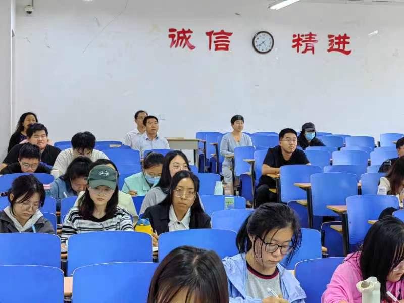 郝旭亮来到仁济甲座106,带队深入教学一线,对学院教学工作进行全面检查指导。课堂上,郝院长认真听课,详细记录课堂教学情况,主动走到学生中观摩学生学习情况,并和同学们交流学习情况,了解同学的课堂需求。