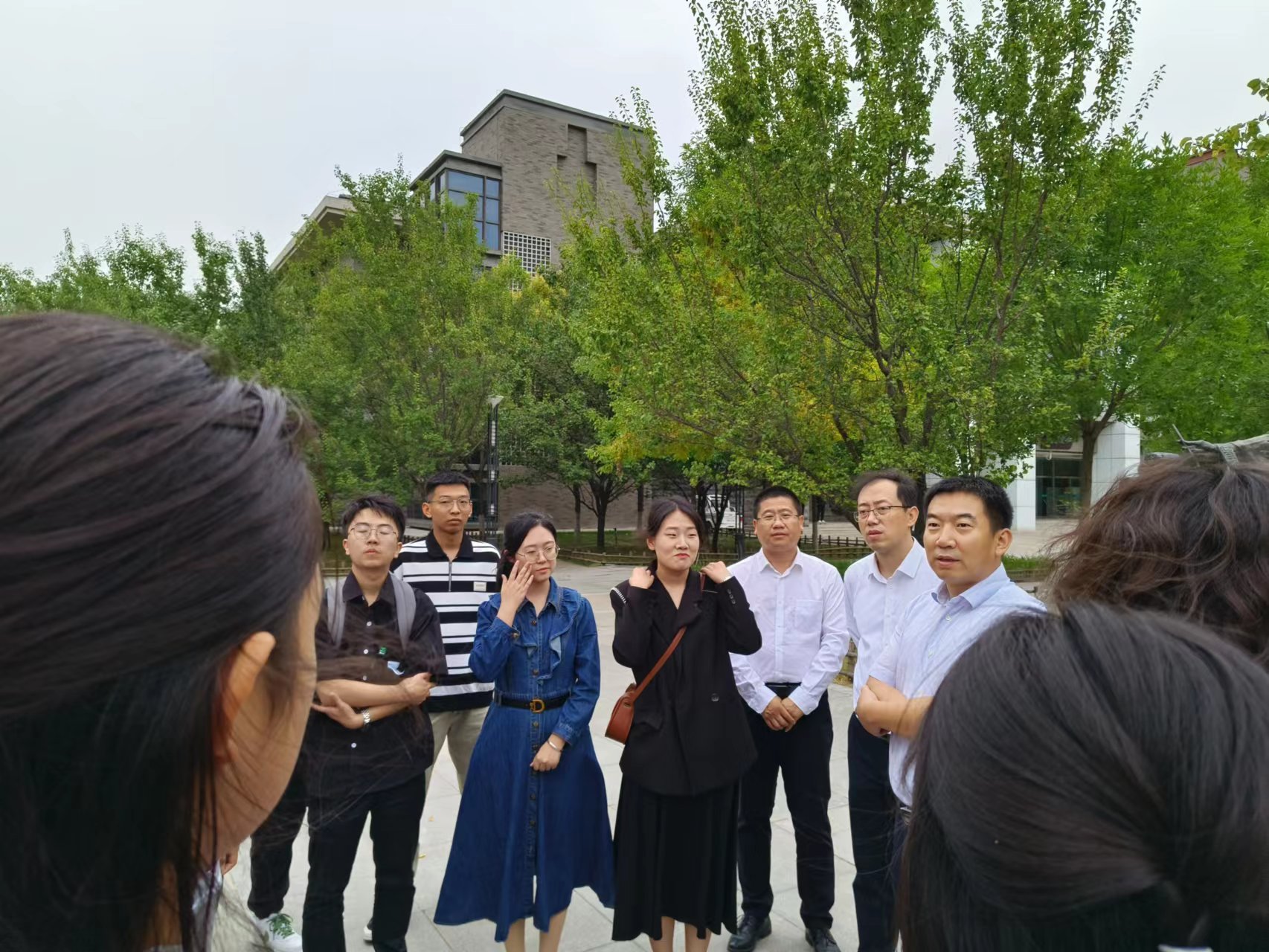 在仲景像前,偶遇大一本科新生和23级研究生,郝院长与同学们亲切交流,询问他们的假期生活、新学期计划等情况。对来自全国各地同学是否适应山中医的生活,对于学习有无困难,专业就业前景了解情况进行了亲切的询问。