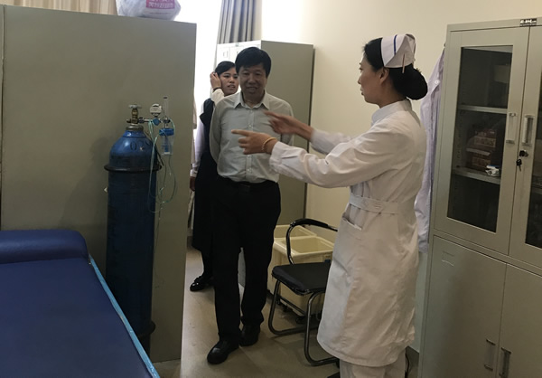 2017年9月6日下午,党委书记夏耀林、纪委书记蔡晓丽带领党院办、总务、医务、护理、门诊、院感、保洁等爱卫会成员一行14人分两组对医院门诊楼和住院部的卫生环境进行大检查。