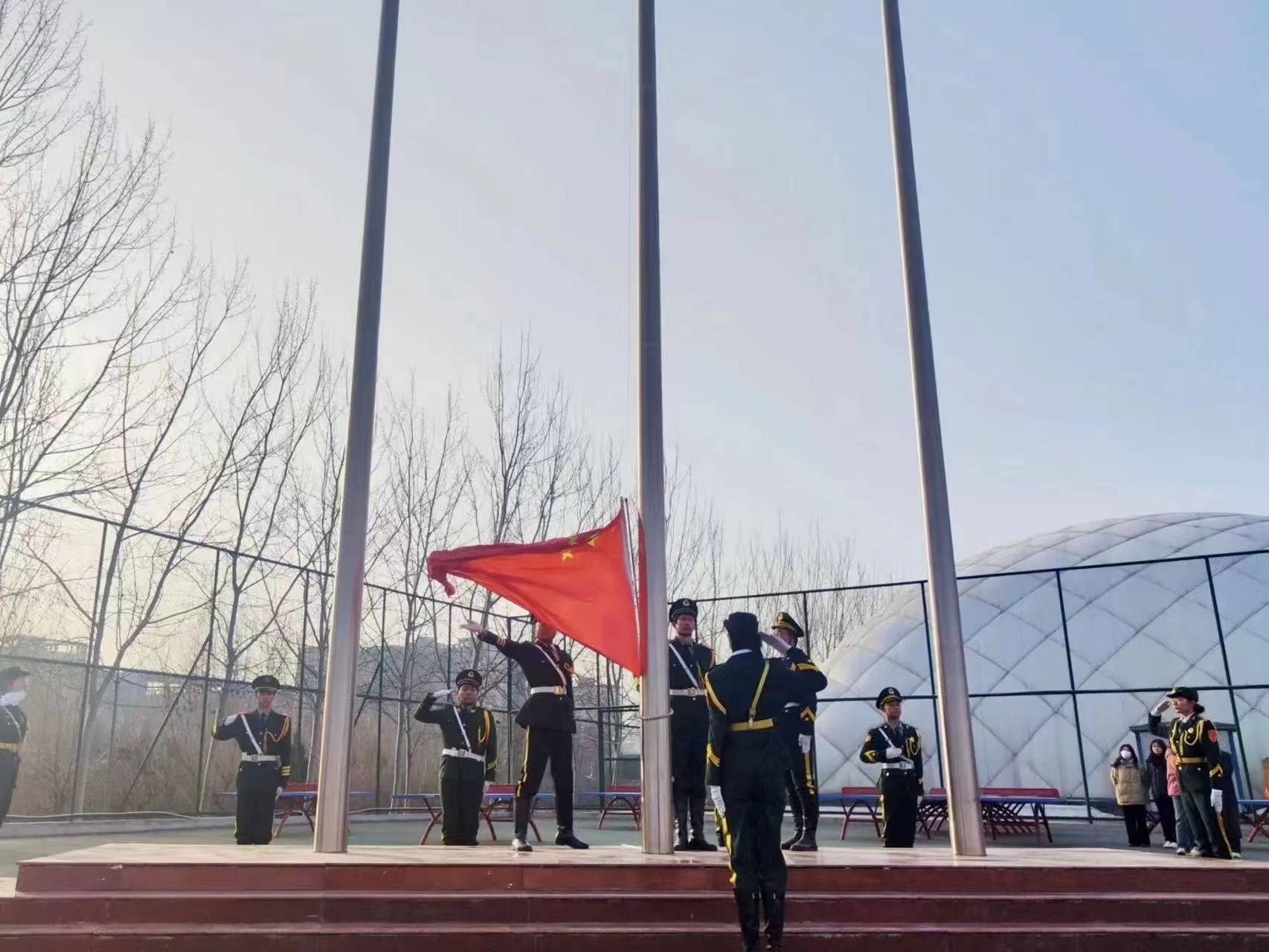 迎着初春的朝阳,精神抖擞、训练有素的学院国旗护卫队踏着整齐划一的步伐走向仪式现场。随着慷慨激昂、铿锵有力的《义勇军进行曲》奏响,五星红旗冉冉升起,高高飘扬在操场上空。全院师生齐聚在鲜艳的国旗下,以踔厉奋发的姿态、笃行不怠的决心,满怀信心迎接新学期的到来。