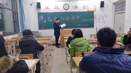 会上,各支部书记首先带领大家学习了《关于在全校各党支部开展弘扬“红船精神”主题党日活动的通知》要求、习近平同志2005年6月在光明日报发表的文章《弘扬“红船精神”走在时代前列》和12月4日在浙江嘉兴召开的弘扬“红船精神”座谈会内容,深入学习了“开天辟地、敢为人先的首创精神,坚定理想、百折不挠的奋斗精神,立党为公、忠诚为民的奉献精神”的“红船精神”。
