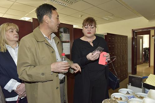 会后,科教文化交流团代表参观了医院中医药文化特色门诊、中医药标本陈列馆,亲身体验了拔罐、推拿、针灸等中医特色疗法,品鉴了不同中药饮片,了解了中医药发展的历史。所到之处不断拍照留影,表示希望能让更多的西方人了解这神奇的东方医学。