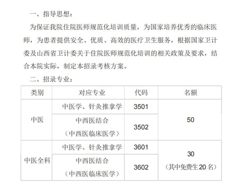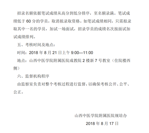 山西中医学院附属医院2018年中医住院医师规范化培训招录考核方案