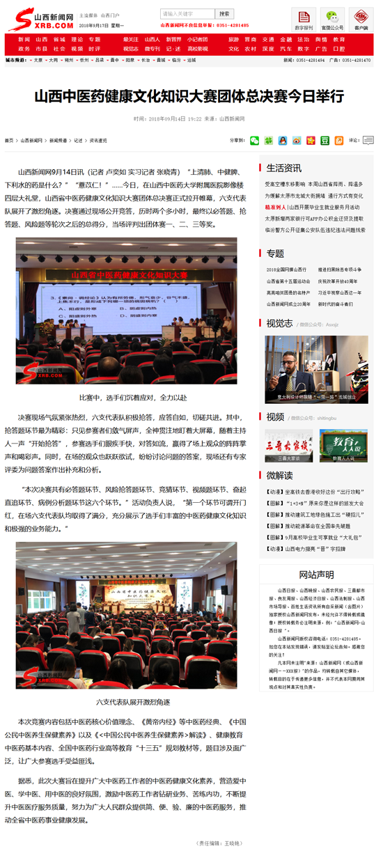山西中医药健康文化知识大赛团体总决赛今日举行