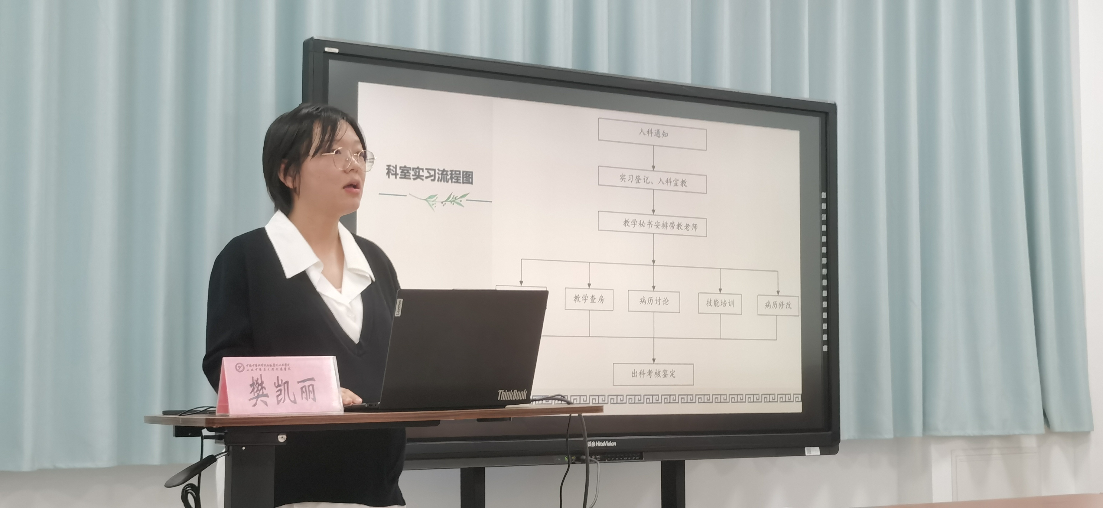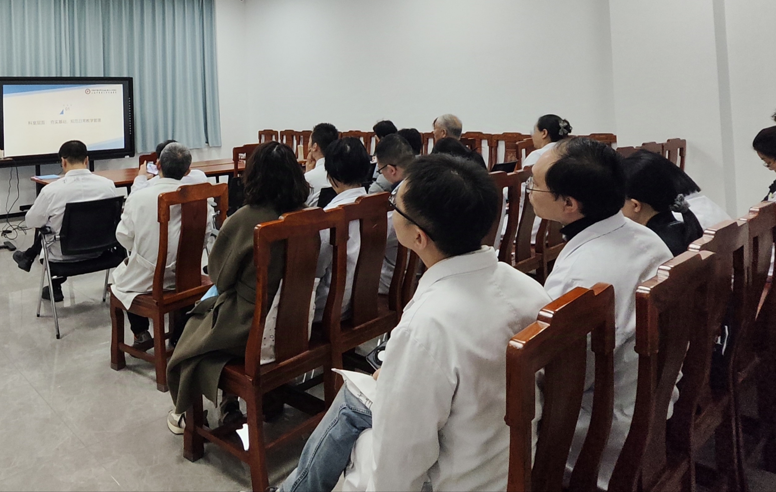 随后,科教科教学秘书樊凯丽对本次迎评工作所需准备的材料进行了详细说明,包括入科登记、入科教育、教学查房、小讲课、病例讨论、出科考核等,并对这些材料的规范化整理要求进行了讲解。