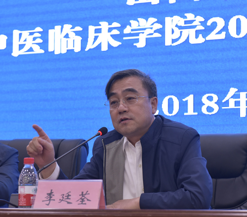 李廷荃为新生们讲述了中医临床学院的专业特色与就业发展方向,他要求,精读经典,贯通古今,感悟思辨,希望同学们成长为一个具有儒家风范、道家气象和佛家慈悲的中医人。