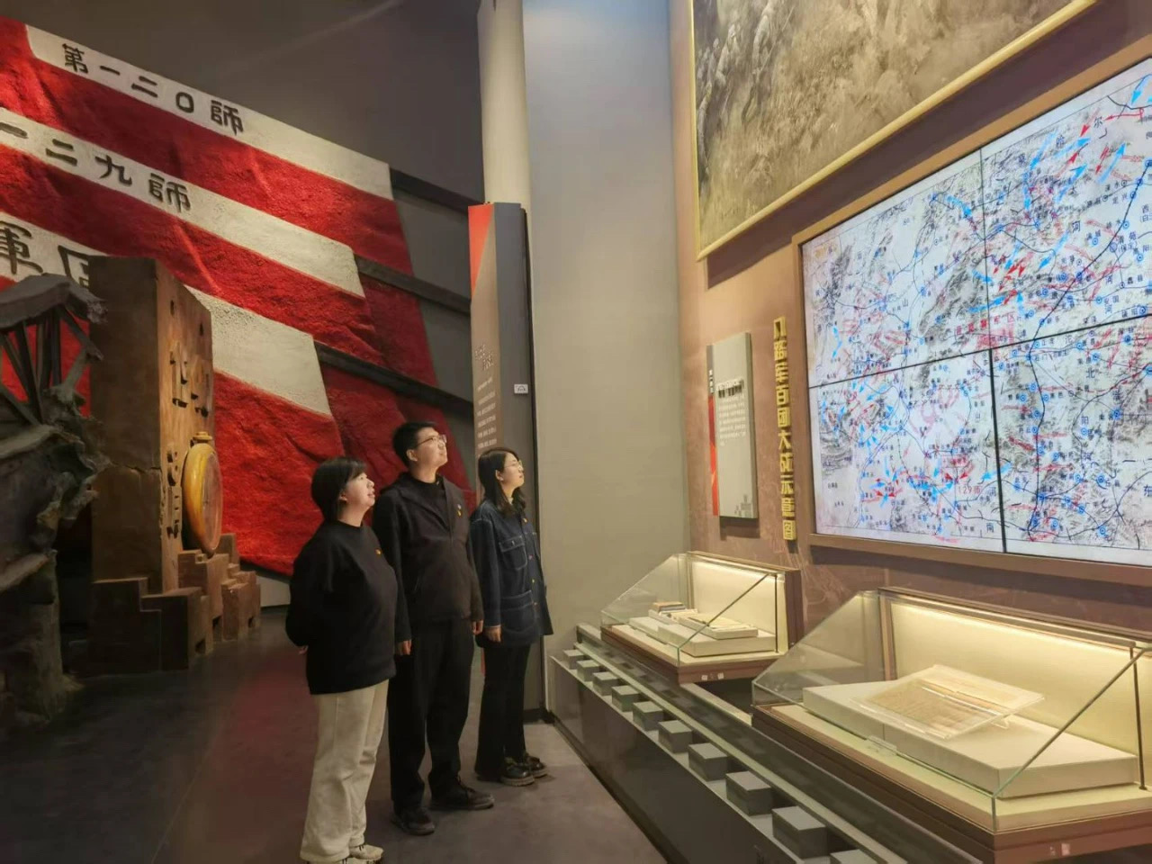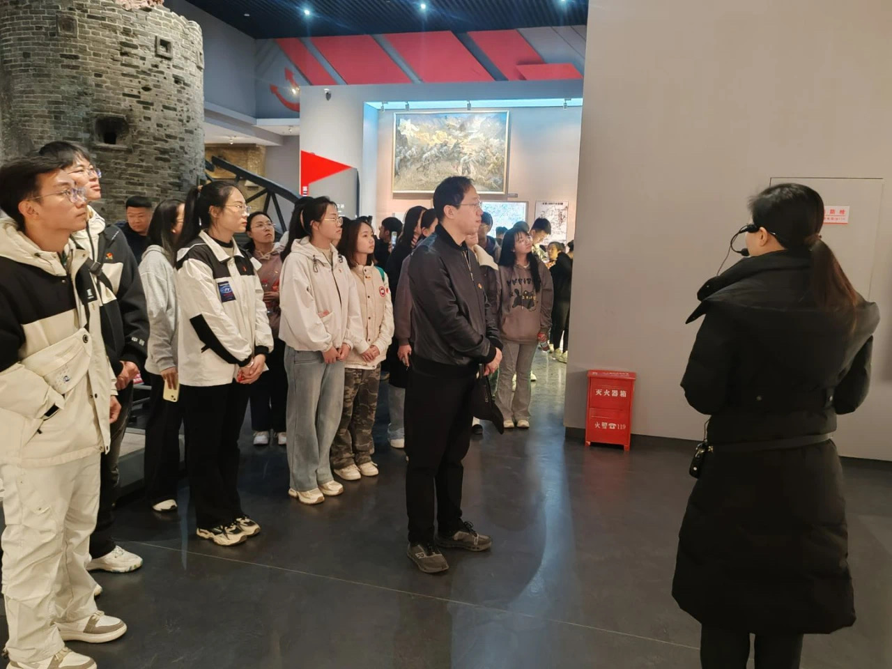 师生们在讲解员的带领下,认真参观馆内珍贵的抗战文物与历史文献,从百团大战的战略背景、正太铁路破袭战的关键战役、狮脑山阻击战的血火记忆、军民联合抗敌的感人事迹等方面,系统了解这场抗战史上规模最大战役的壮阔图景。展馆内陈列着作战地图、战场缴获的日军装备、八路军将士手写战斗日记、彭德怀元帅签发的作战命令等珍贵史料,配合沉浸式场景复原与多媒体影像技术,生动再现了八路军将士浴血奋战、根据地民众踊跃支前的历史画卷。