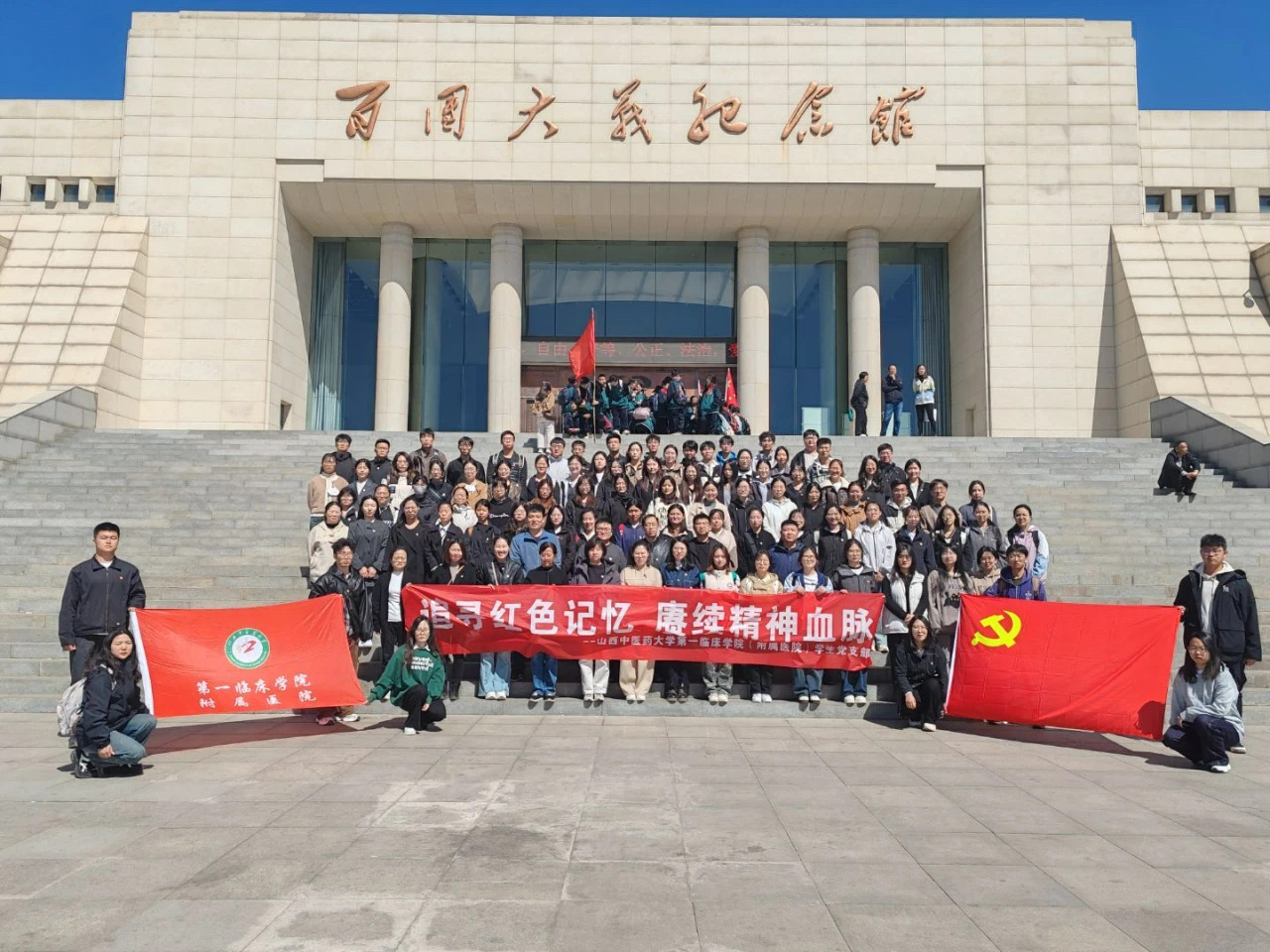 为深入学习贯彻党的二十届三中全会精神,全面践行习近平总书记关于"用好红色资源、赓续红色血脉"的重要指示,激励青年学子传承抗战精神、勇担时代使命,2025年4月2日,第一临床学院(附属医院)学生党支部赴阳泉市百团大战纪念馆开展"追思英烈足迹,淬炼初心使命"主题党课实践教育活动。