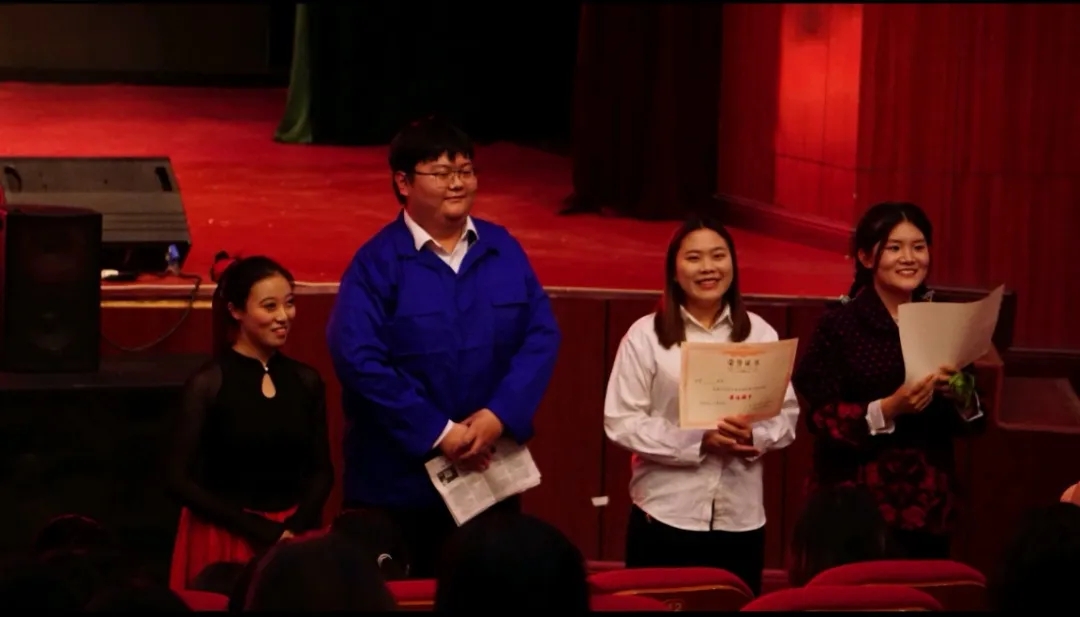 在主题宣讲环节,他们创新形式,通过模拟颁奖典礼来向大家阐述本班情况“最佳团员奖”“仁心奉献奖”“勤劳奉献奖”“最佳倾听奖”。在评委点评中,该环节被誉为参赛环节中风格最具创新的节目。