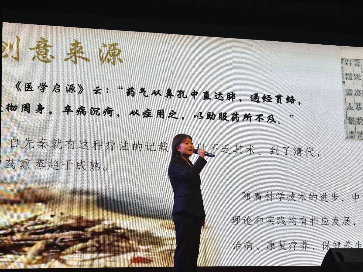 路演环节中,各团队选手妙语连珠,在有限时间内条理清晰、逻辑流畅地阐述创业理念和创新成果。他们借助生动的演讲与精彩的展示,充分展现了中医药文化的独特魅力,赢得现场阵阵掌声。