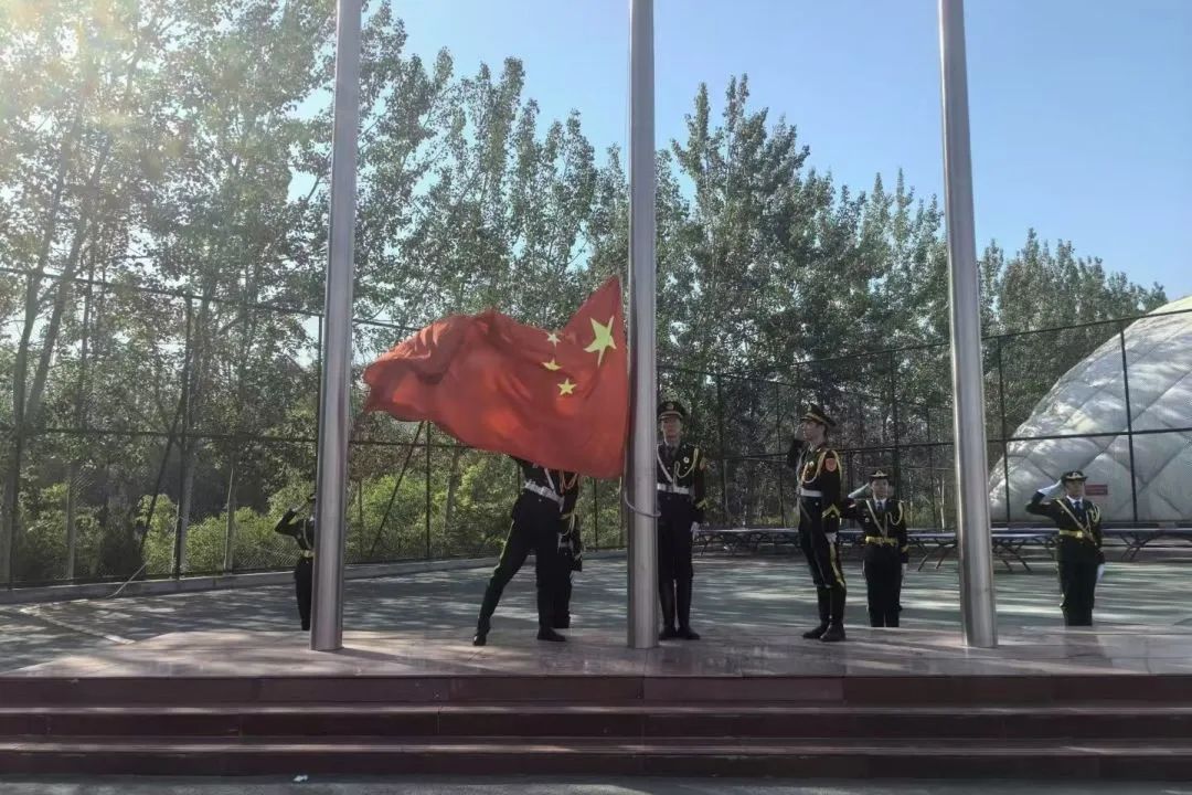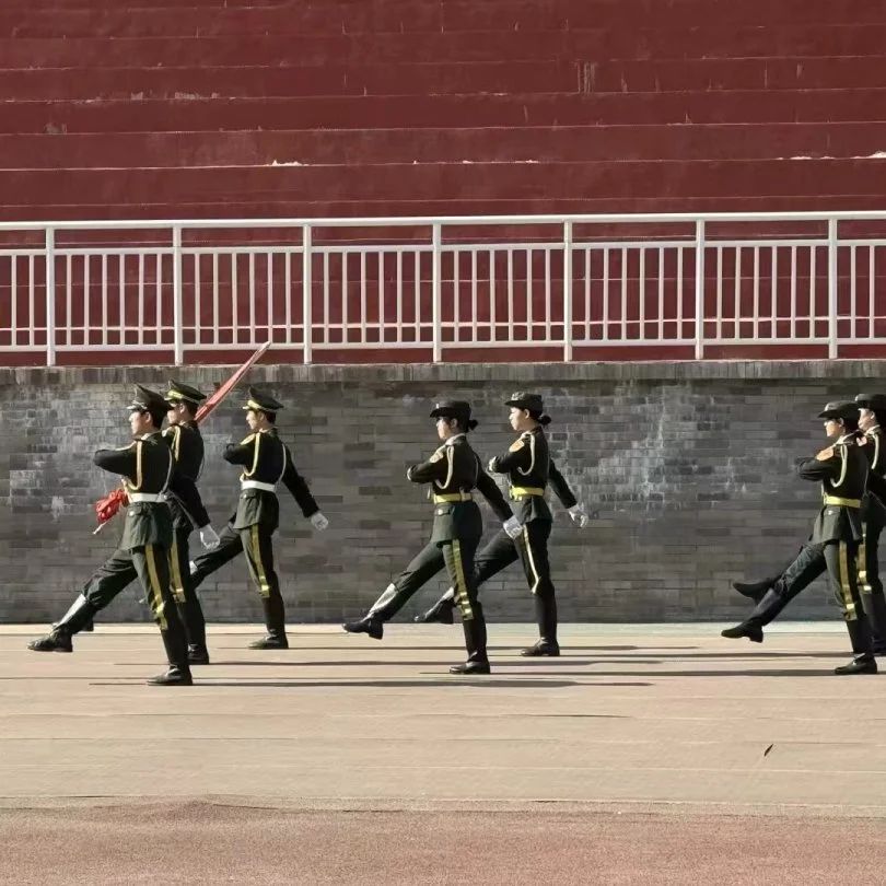 )于华佗体育场举行升旗仪式。院党委副书记任剑锋及学院辅导员老师、全体在校生参加。