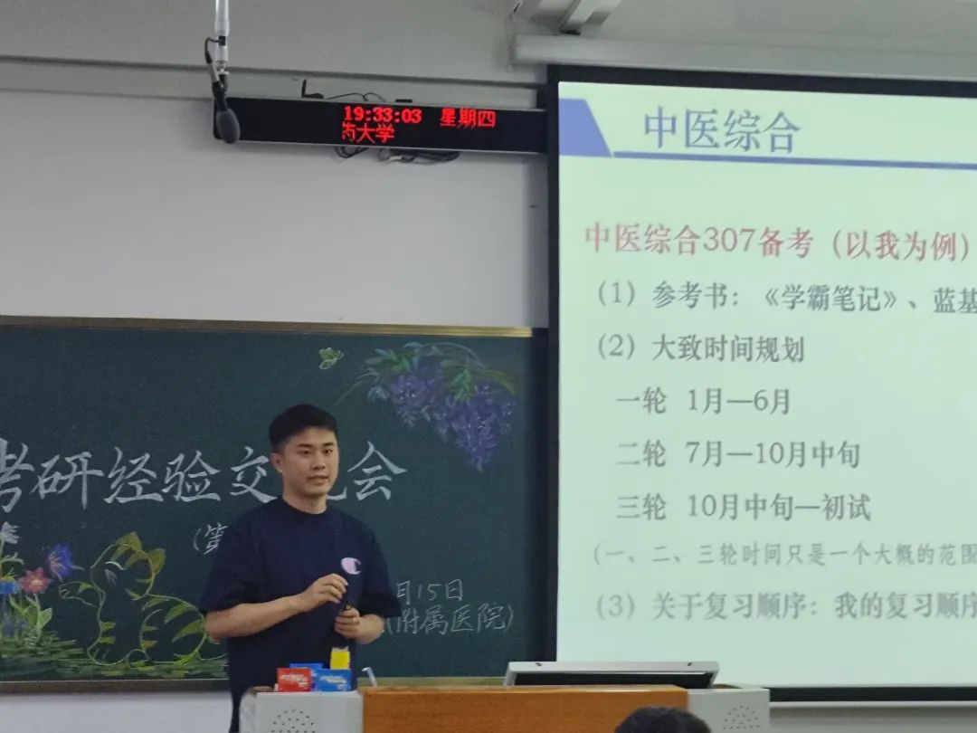 第一临床学院(附属东京热 )于5月15日晚在仁济甲座204成功举办了第二场"考研经验交流会"。本次交流会邀请20级优秀毕业生分享最新备考经验与实战技巧,为备战考研的同学们提供了针对性指导。