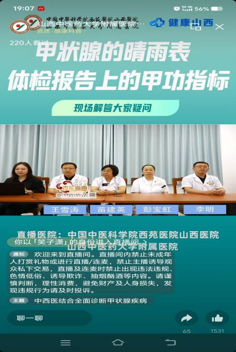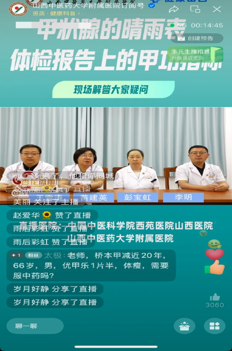 直播活动中,专家们凭借丰富的临床经验和扎实的专业知识,深入浅出地讲解了各类常见甲状腺疾病的发病原因、症状表现、诊断方法以及治疗手段。在互动环节,观众们踊跃提问,专家们耐心解答,直播现场气氛热烈。