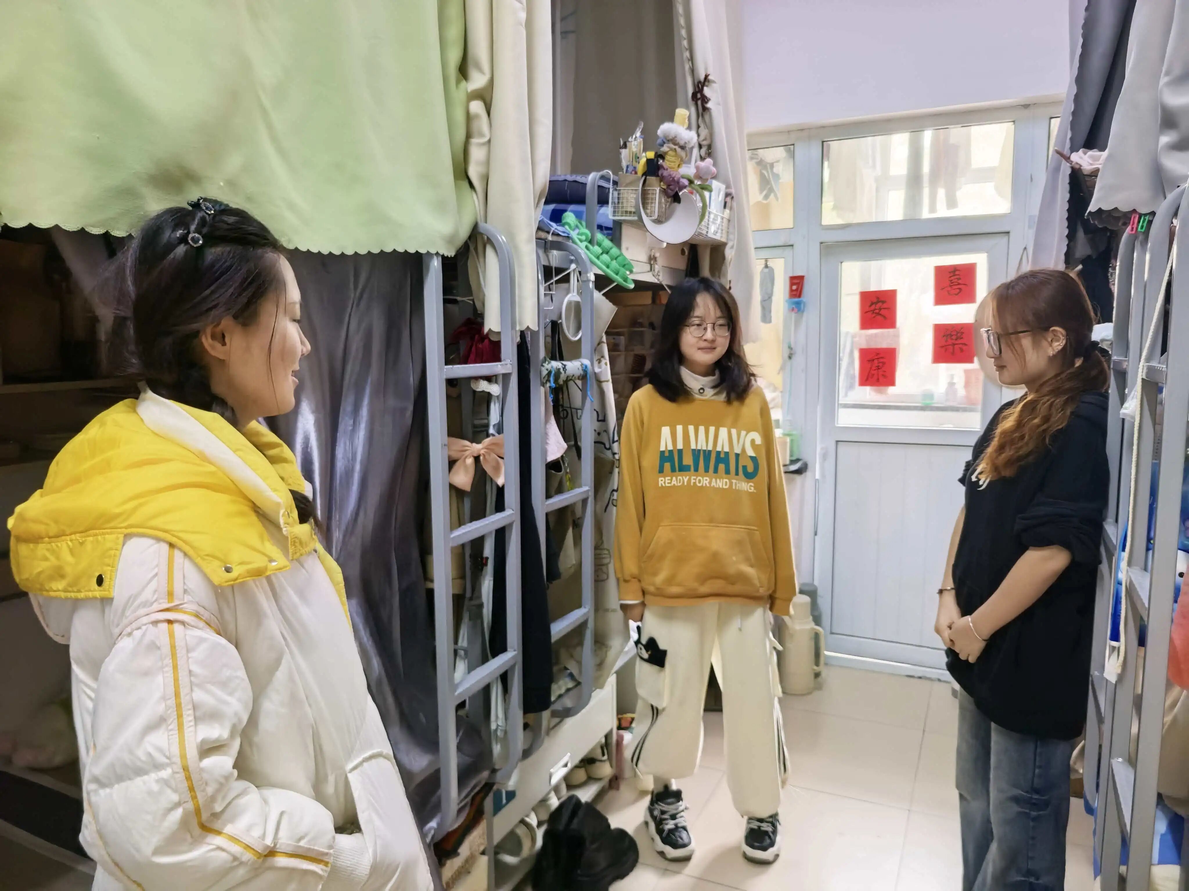 本次检查旨在全面贯彻校园安全管理方针,切实巩固平安校园建设成果,进一步强化学生安全意识,优化宿舍育人环境。辅导员们细致地关心着大家的学习进度与生活日常,交谈中,辅导员们也不忘叮嘱大家,从用电安全到消防意识,从物品摆放到应急处理——这些看似琐碎的要求,背后是老师对每位同学最深切的牵挂。